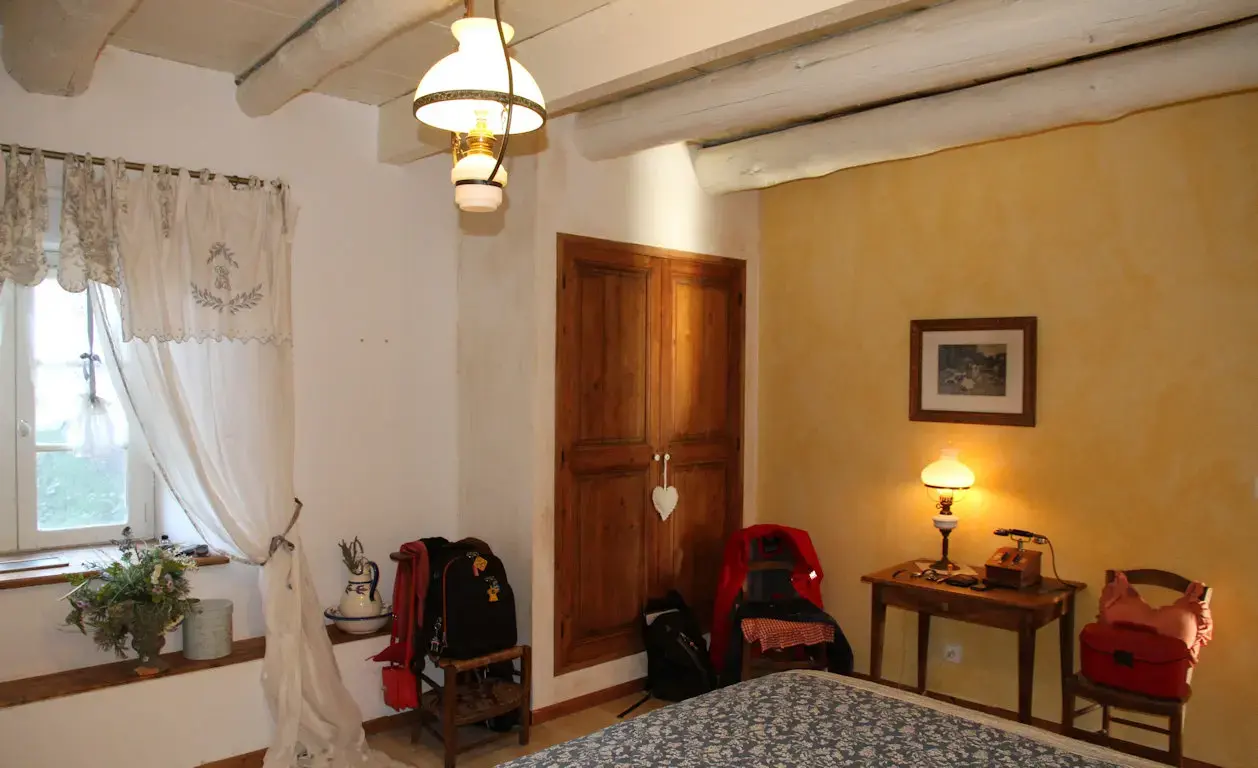 Ouverte sur le jardin et baignée de lumière, la chambre Histoire Ensoleillée est un véritable cocon où détente, nature et authenticité se retrouvent pour composer un moment hors du temps, à seulement quelques minutes du Puy-en-Velay et des grands sites du Velay.
